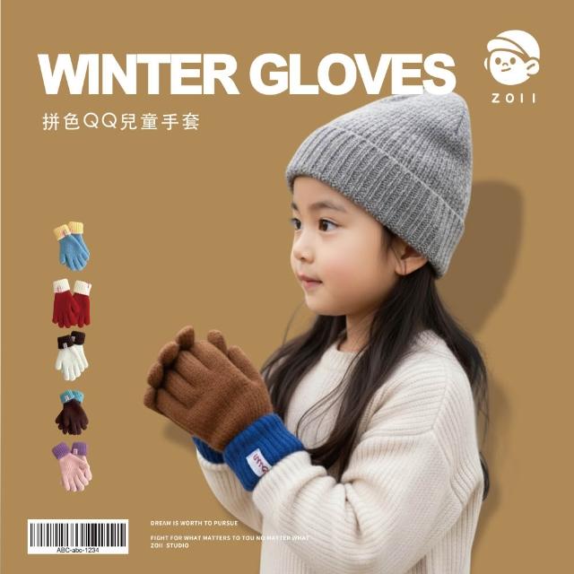 ZOII 佐壹可觸控|兒童拼色QQ手套 兒童手套 保暖手套 觸控手套 小童手套 保暖 禦寒 手套 觸控 #801033