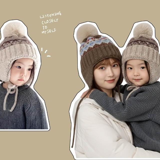 ZOII 佐壹費爾島毛球親子針織護耳毛帽 毛帽 針織帽 兒童毛帽 保暖帽 賞雪帽 防風帽 護耳帽#109044