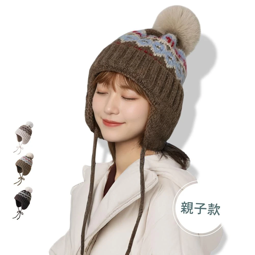 ZOII 佐壹費爾島毛球親子針織護耳毛帽 毛帽 針織帽 兒童毛帽 保暖帽 賞雪帽 防風帽 護耳帽#109044