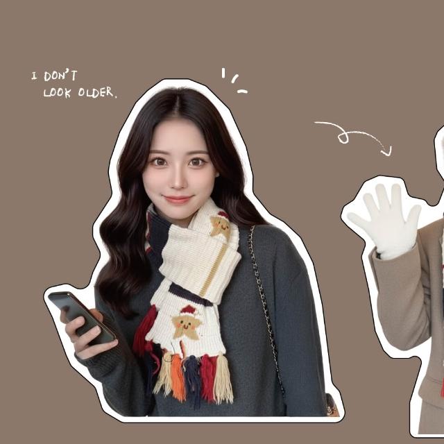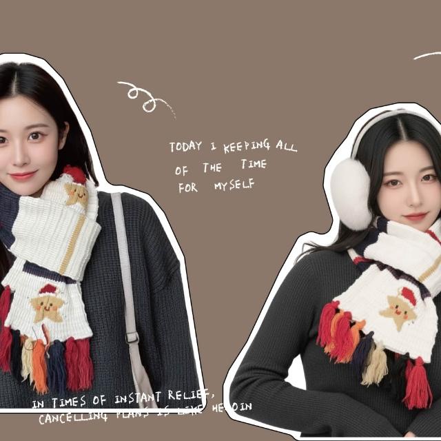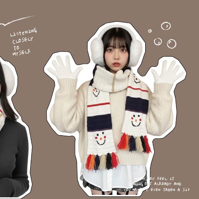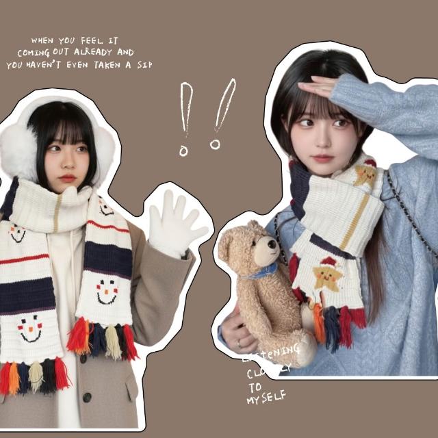 ZOII 佐壹聖誕厚磅流蘇針織圍巾 雪人圍巾 冬天保暖圍巾 針織圍巾 冬季圍巾 可愛圍巾 賞雪 聖誕禮物#322011