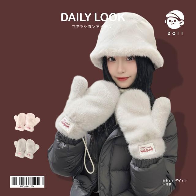 ZOII 佐壹雪糰糰厚絨連指繫帶手套 連指手套 毛絨手套 冬季保暖 掛繩手套 冬天手套 雪地手套#801035