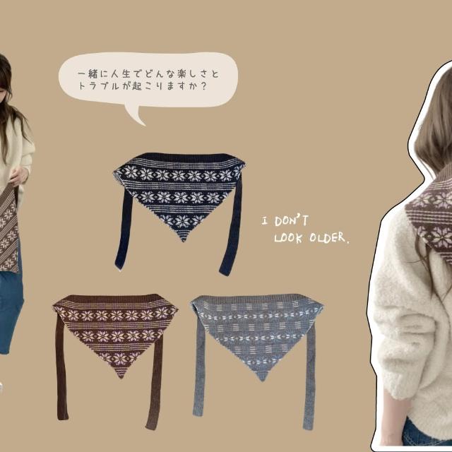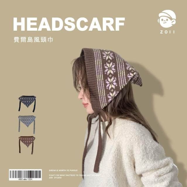ZOII 佐壹費爾島復古提花三角頭巾 多功能 復古頭巾 保暖頭巾 頭巾 針織三角巾 韓系頭巾 秋冬配件#115013