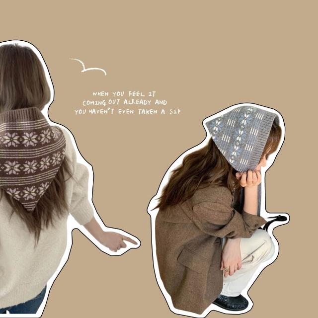 ZOII 佐壹費爾島復古提花三角頭巾 多功能 復古頭巾 保暖頭巾 頭巾 針織三角巾 韓系頭巾 秋冬配件#115013