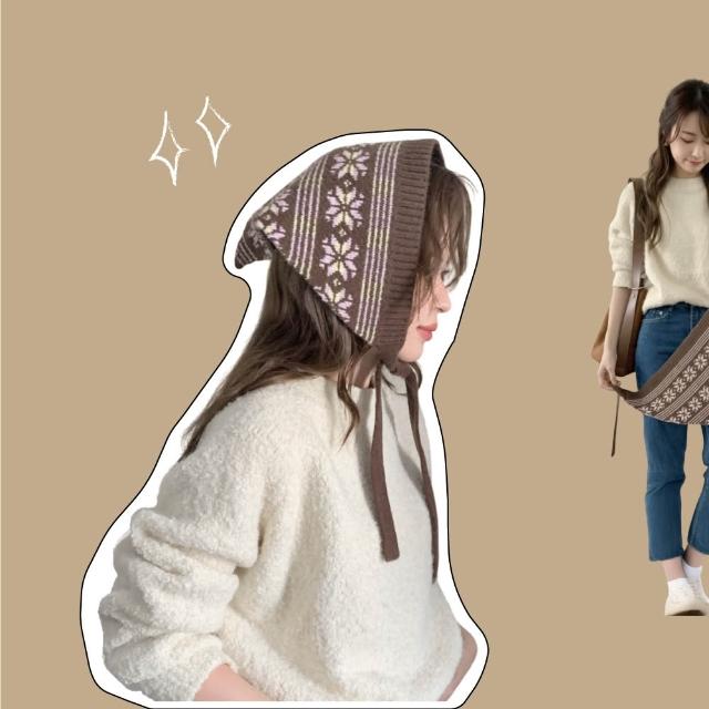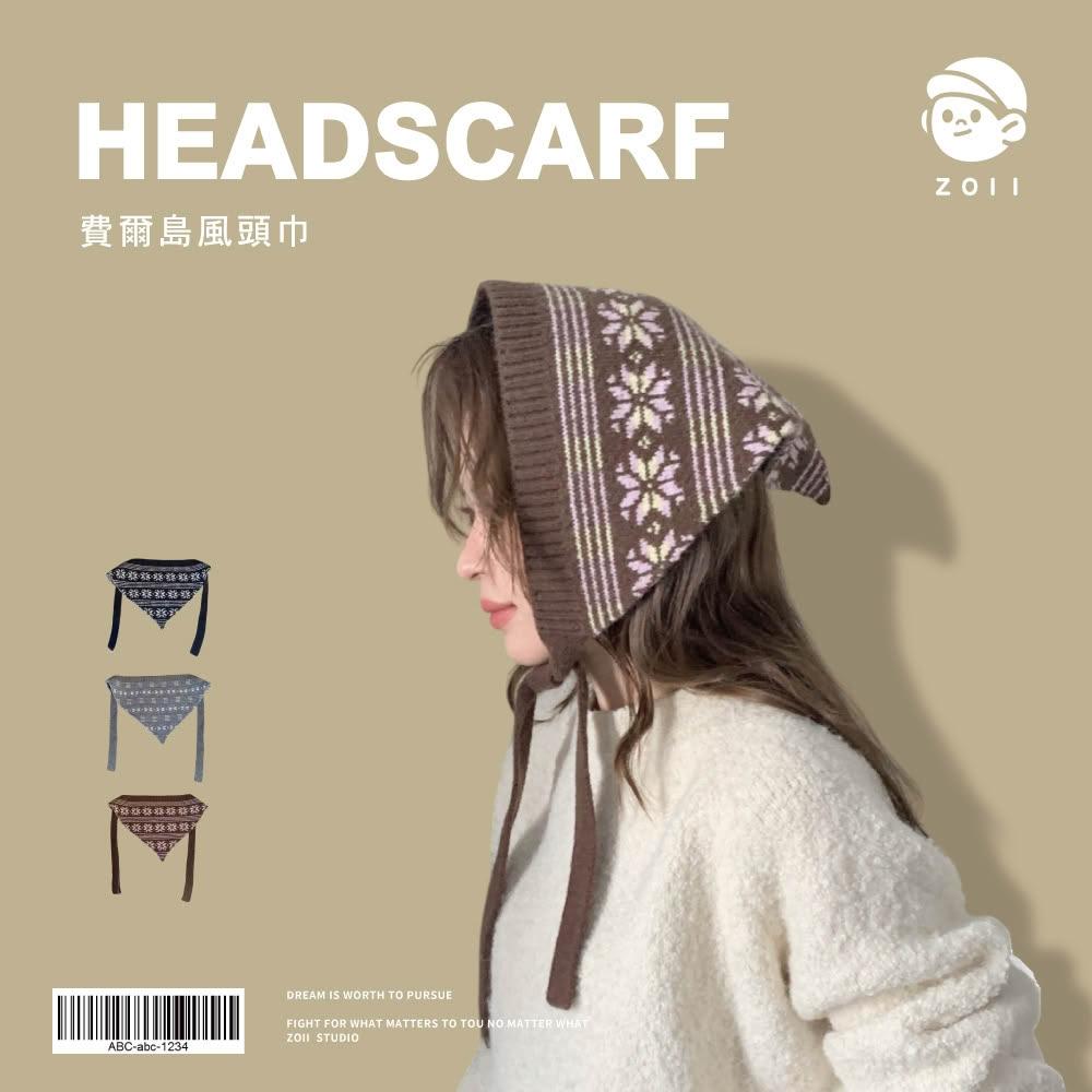 ZOII 佐壹費爾島復古提花三角頭巾 多功能 復古頭巾 保暖頭巾 頭巾 針織三角巾 韓系頭巾 秋冬配件#115013