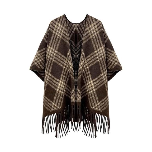 ZOII 佐壹韓系高級感格紋流蘇大披肩圍巾 禦寒圍巾 保暖圍巾 賞雪圍巾 圍巾 披巾 流蘇圍巾#322066