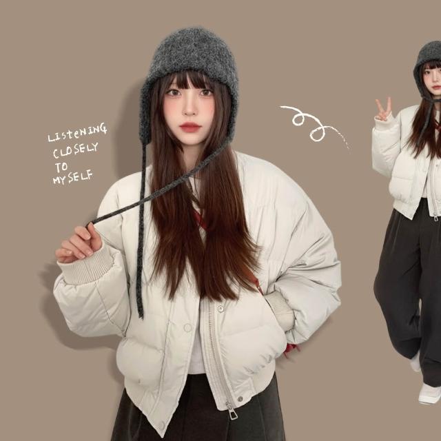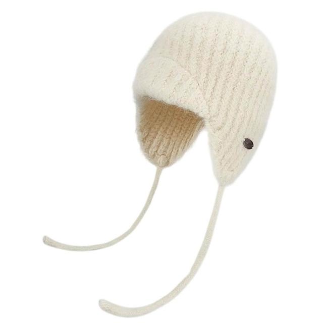 ZOII 佐壹韓版小橢圓標繫帶羊毛護耳帽 毛帽 羊毛帽 秋冬帽 針織帽 保暖帽 賞雪帽 護耳帽#109018