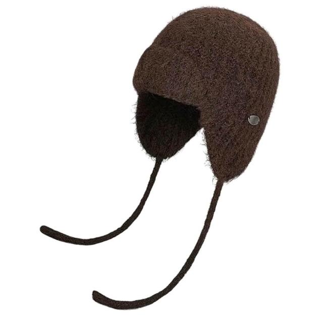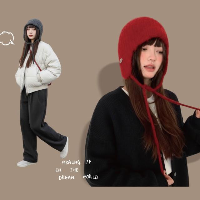 ZOII 佐壹韓版小橢圓標繫帶羊毛護耳帽 毛帽 羊毛帽 秋冬帽 針織帽 保暖帽 賞雪帽 護耳帽#109018