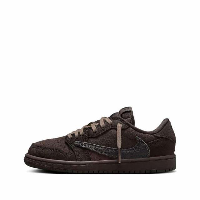 NIKE 耐吉Travis Scott x Air Jordan 1 Low OG PS Velvet Brown 聯名款倒鉤 絲絨棕中童 DO5442-202