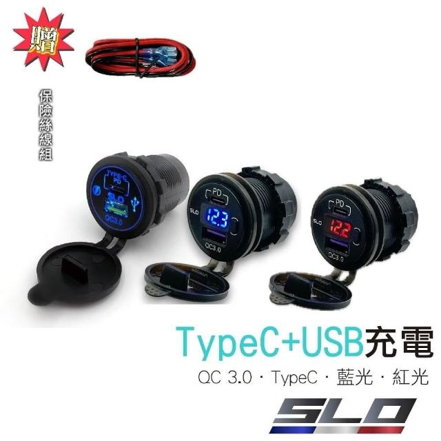 SLOUSB+TYPE C (機車 TYPE C 充電座 QC3.0 USB 充電器 電壓表)