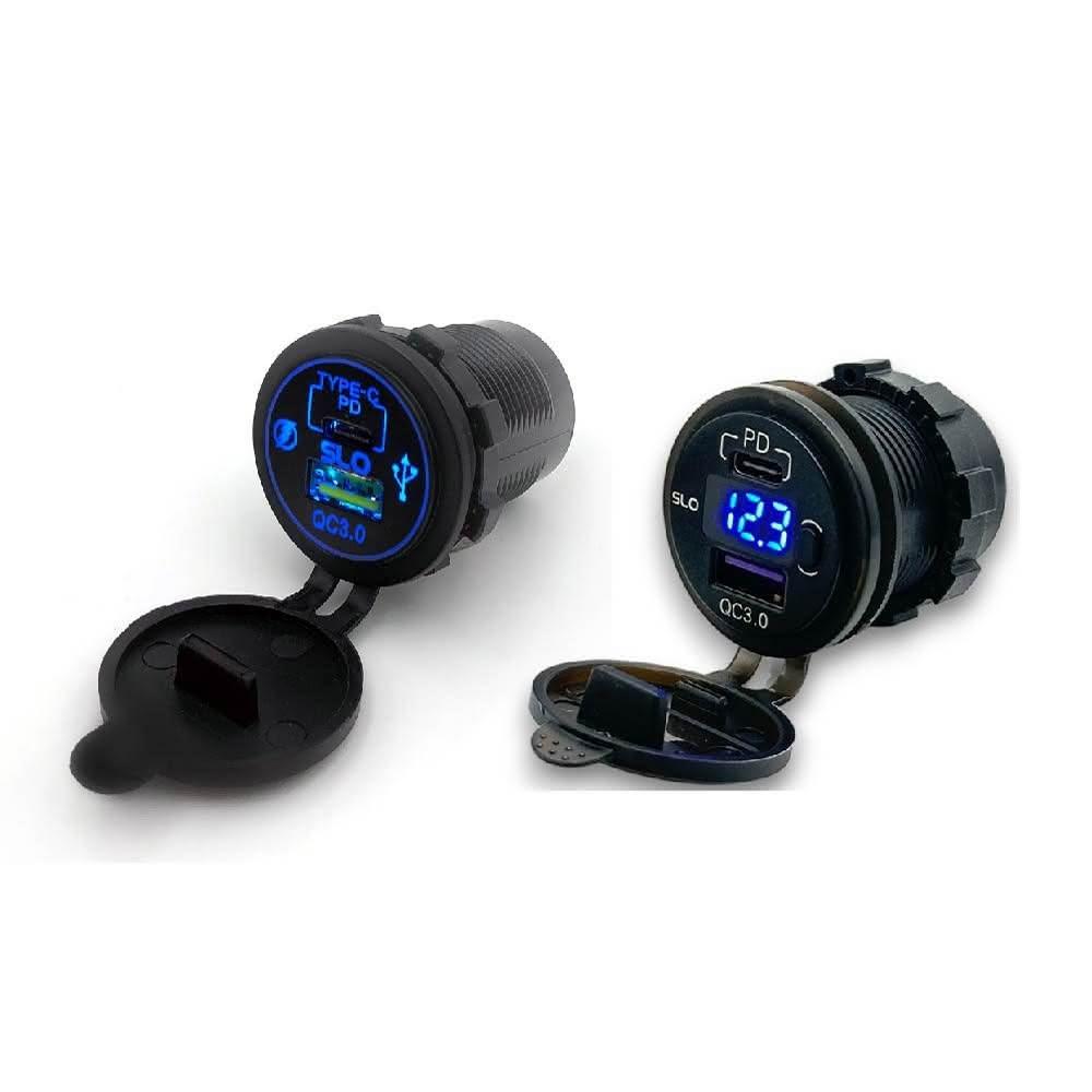 SLOUSB+TYPE C (機車 TYPE C 充電座 QC3.0 USB 充電器 電壓表)