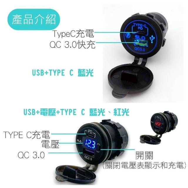 SLOUSB+TYPE C (機車 TYPE C 充電座 QC3.0 USB 充電器 電壓表)