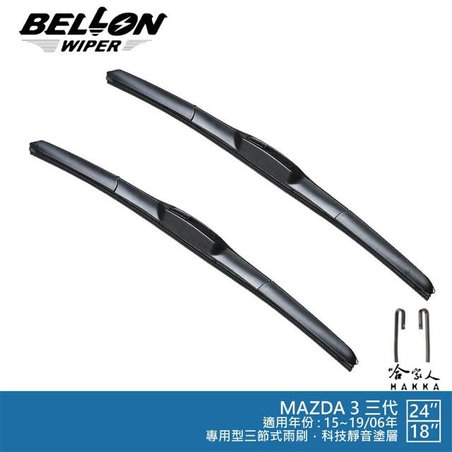 BELLONMAZDA 3 三代 15~19年 專用接頭雨刷 附雨刷精 24吋 18吋 雨刷 哈家人(勾式 三節式雨刷)