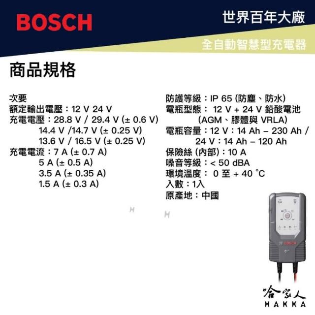 BOSCH 博世C7 全自動 電瓶充電器 IP65防水 12V 24V AGM(汽車 機車 貨車 充電 膠體電池 哈家人)