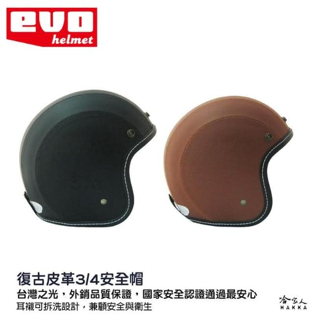 EVOEVO 復古 皮革安全帽(復古安全帽 黑 咖啡 安全帽 3/4 皮帽 騎士帽 機車安全帽 半罩安全帽 全罩安全帽 哈家人)