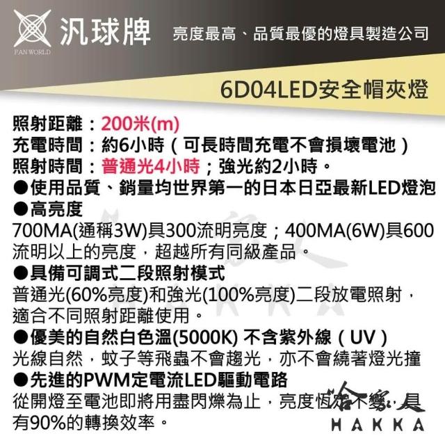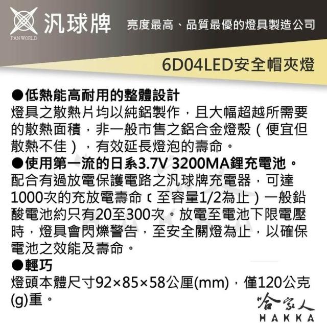 汎球牌 6D04 遠照安全帽夾燈 充電式 照射距離 200m 兩段式 安全帽頭燈 登山 捕魚 探照頭燈 一年保固 哈家人