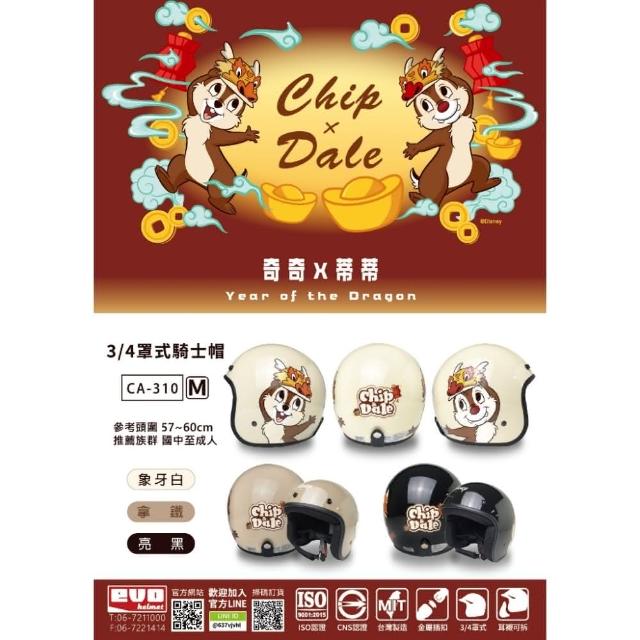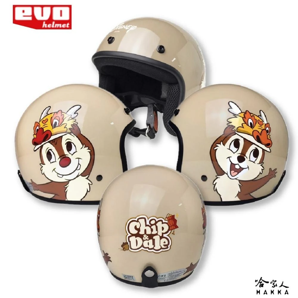 EVO奇奇蒂蒂 迪士尼正版授權 龍年 騎士帽 機車安全帽(3/4安全帽 全罩安全帽 拿鐵 象牙白 黑 哈家人)