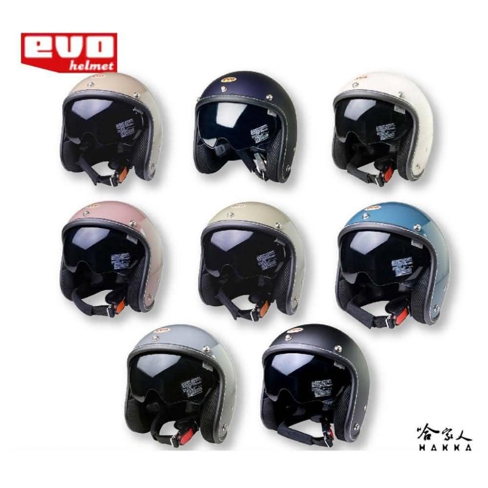 EVO復古內墨鏡機車騎士帽(台灣製造 內墨鏡 安全帽 機車安全帽 3/4安全帽 素色 半罩 皮線內鏡騎士帽 哈家人)