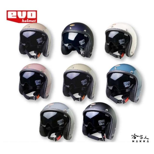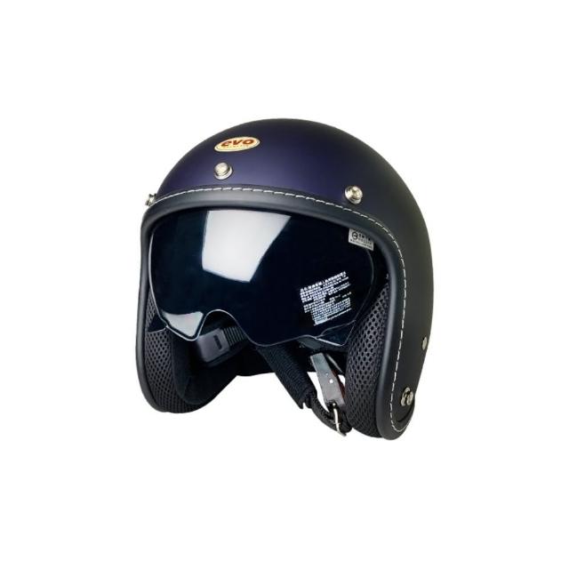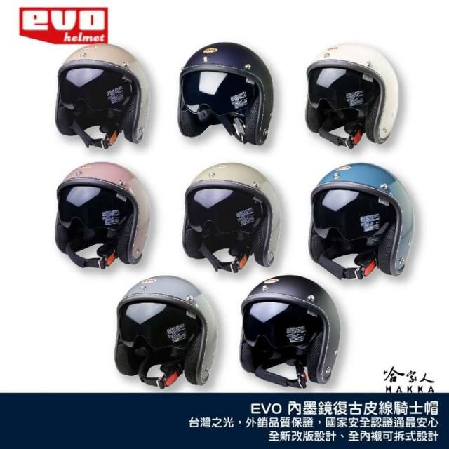 EVO復古內墨鏡機車騎士帽(台灣製造 內墨鏡 安全帽 機車安全帽 3/4安全帽 素色 半罩 皮線內鏡騎士帽 哈家人)