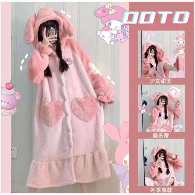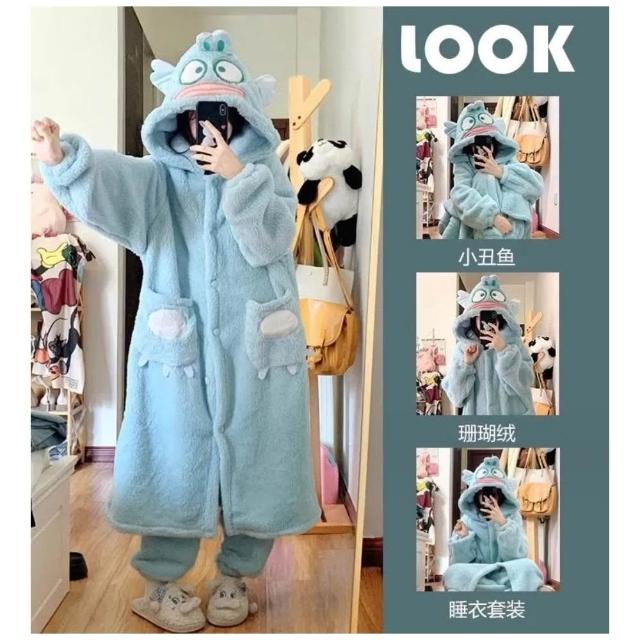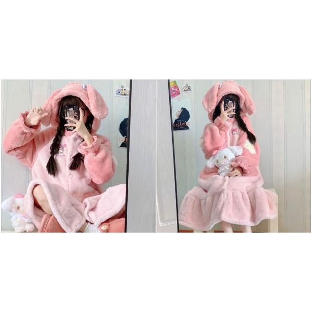 🔥珊瑚絨睡衣🔥 珊瑚絨睡袍 睡袍 冬季睡衣 可愛睡袍 冬天睡衣 法蘭絨睡衣 絨睡袍 睡衣 大耳狗凱蒂貓庫洛米