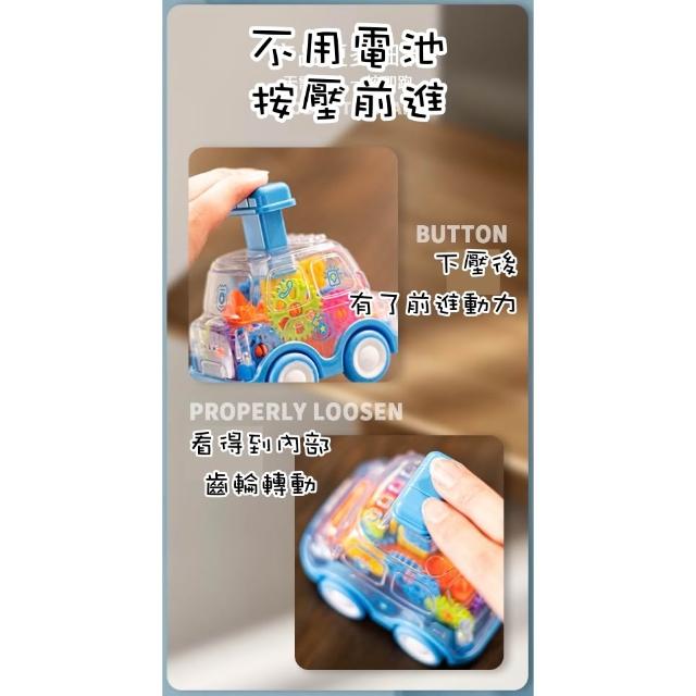 [台灣現貨]🚗🚙🚌兒童卡通按壓透明齒輪車🚗🚙🚌 慣性迴力車 壓力滑行 益智玩具 慣性耐摔透明齒輪燈光玩具車