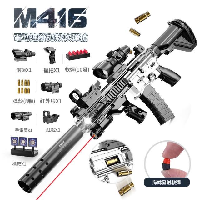 M416手自一體拋殼軟彈玩具男孩電動連發突擊步槍吃雞玩具槍科教模型