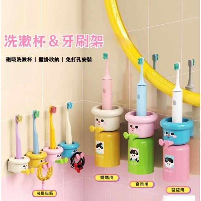 🪥磁吸牙刷置物架 磁吸漱口杯架 免打孔牙刷架 電動牙刷置物架 壁掛式 免打孔 多巴胺磁吸漱口杯子 收納架