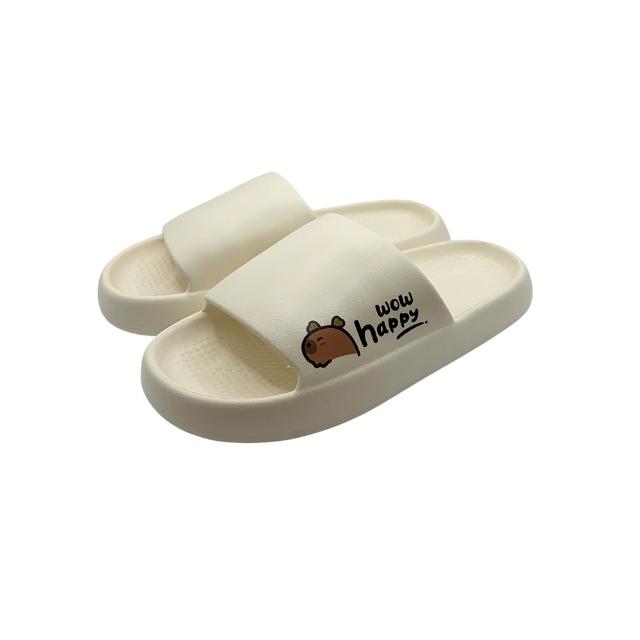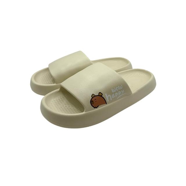 WUWU【MA103 快樂水豚厚底拖】厚底拖鞋 寬版鞋頭舒服 室內室外拖鞋 雨天速乾 防水拖鞋
