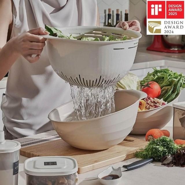 GINII 基尼家居DeSui食品級多功能瀝水籃組 iF設計獎金點設計獎 多用途蔬果瀝水籃 台灣製16L 水果盤蔬菜盤火鍋盤洗菜籃野餐麵包籃