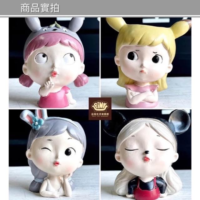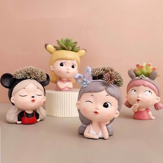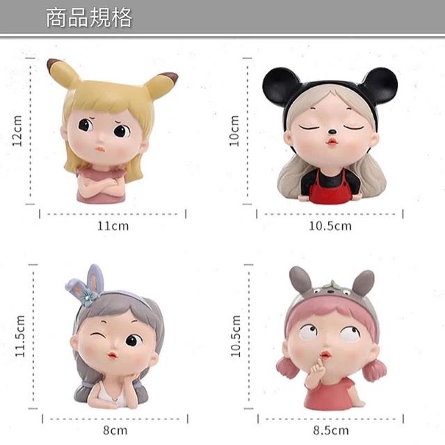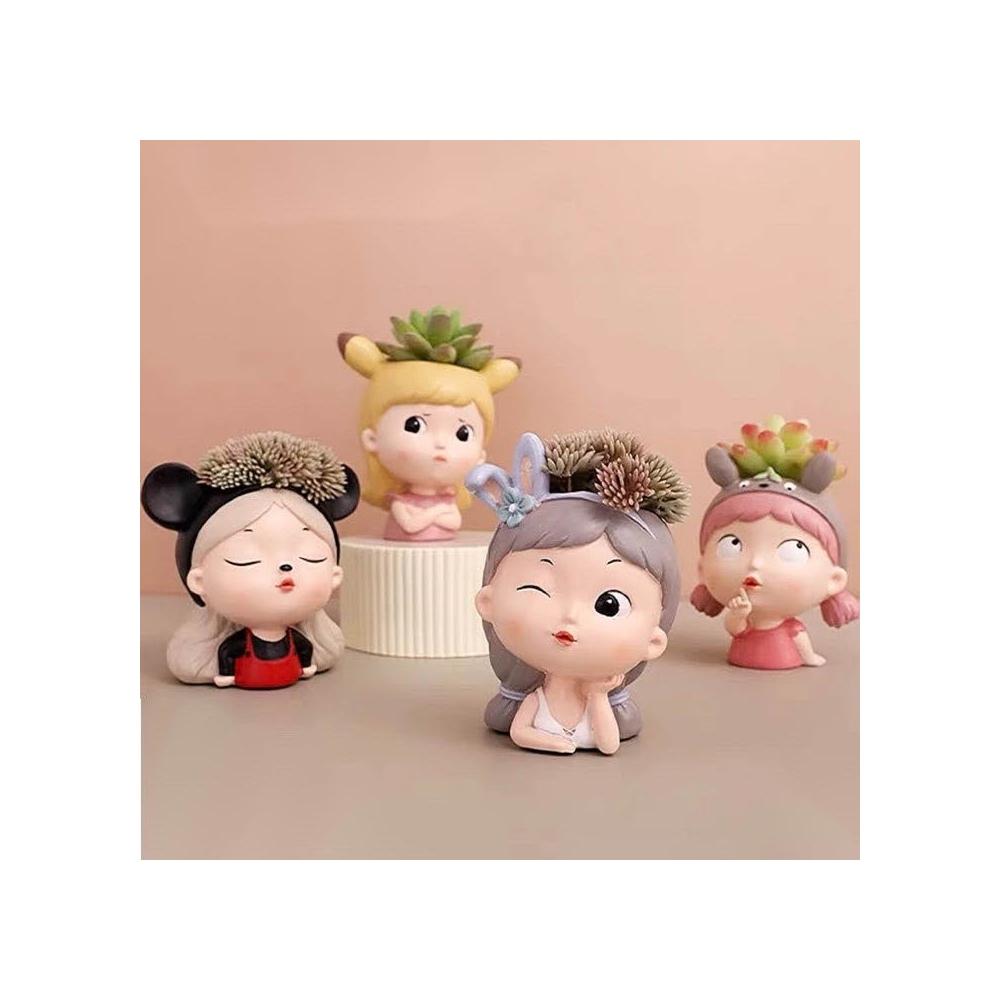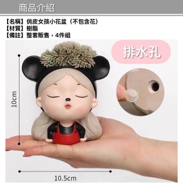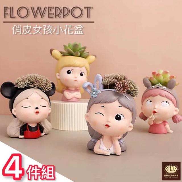 PiNYU 品柚生活傢飾館4件組-俏皮女孩多肉小盆栽(多肉盆栽種植可愛花盆可愛女孩擺件收納筆筒收納)