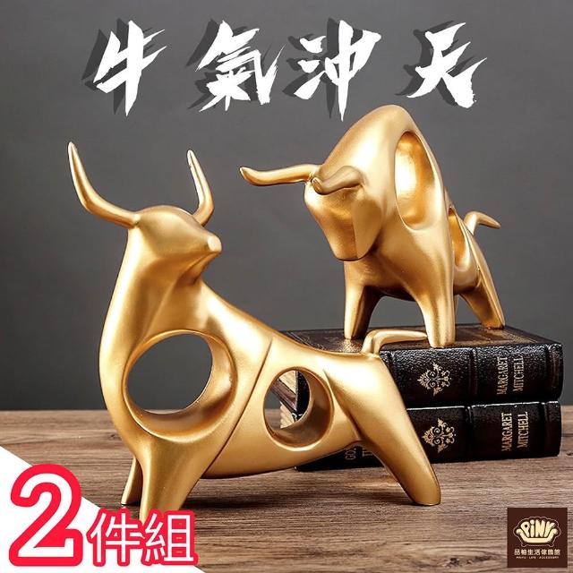 PiNYU 品柚生活傢飾館2件組-牛氣沖天擺飾(氣勢如牛牛氣沖天招財牛擺件玄關辦公室家居酒柜裝飾品風水擺件)