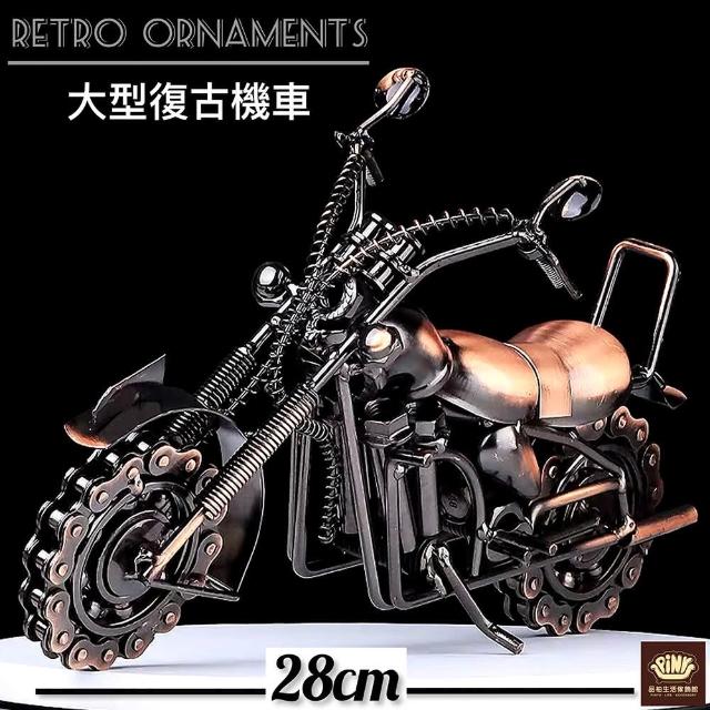 PiNYU 品柚生活傢飾館大型復古機車(工業風復古培林車輪鐵藝機車擺飾 男人擺件 重機 機車模型擺飾)