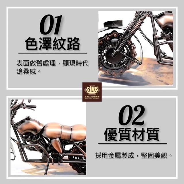 PiNYU 品柚生活傢飾館大型復古機車(工業風復古培林車輪鐵藝機車擺飾 男人擺件 重機 機車模型擺飾)