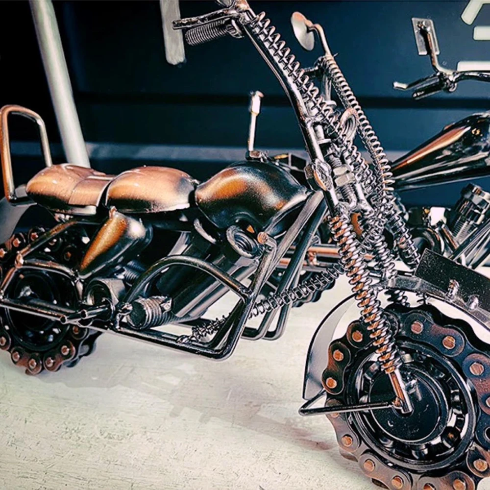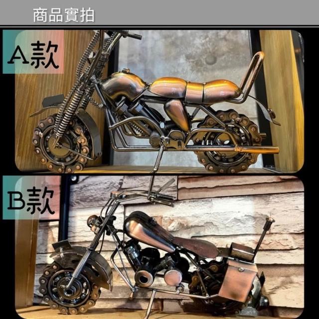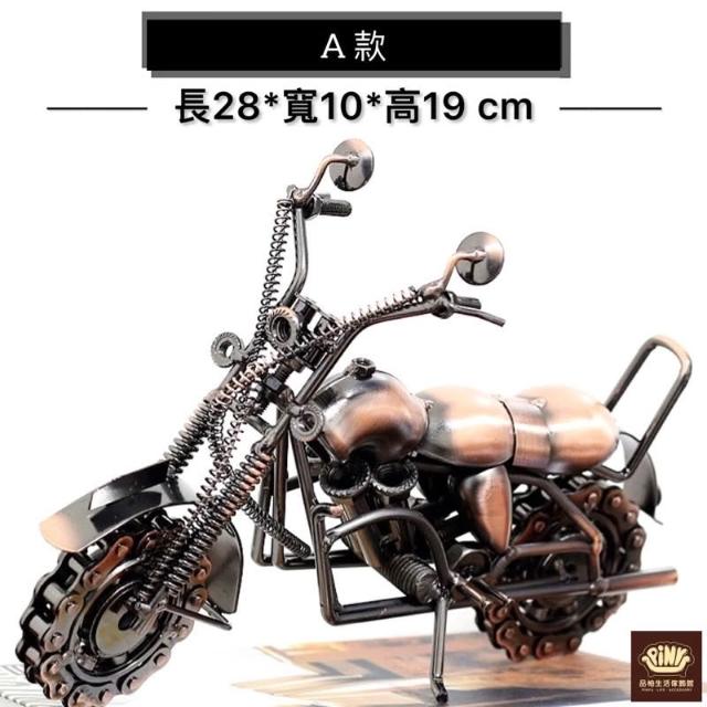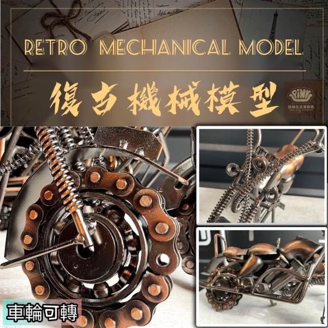 PiNYU 品柚生活傢飾館大型復古機車(工業風復古培林車輪鐵藝機車擺飾 男人擺件 重機 機車模型擺飾)