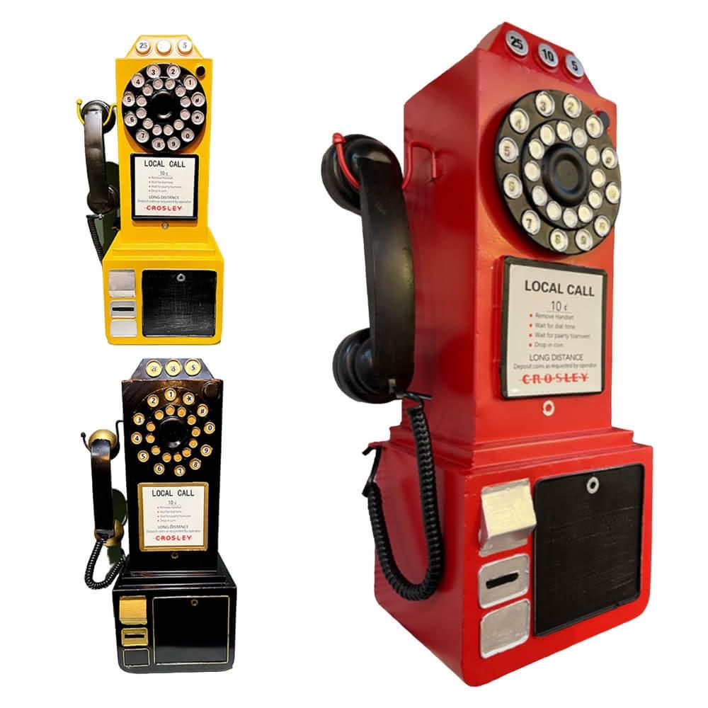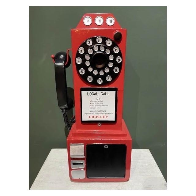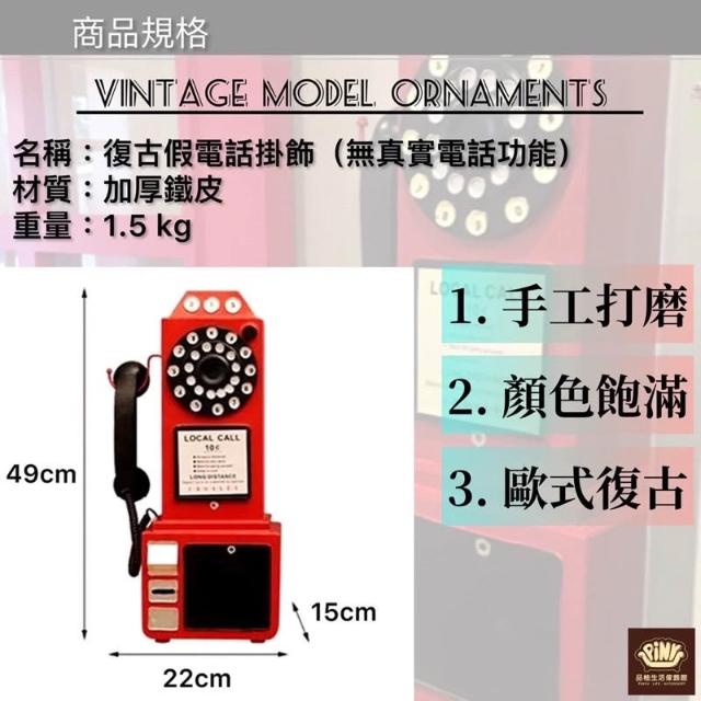 PiNYU 品柚生活傢飾館工業風假電話模型飾品(美式復古風工業風鄉村風老式假電話模型電話亭配件店面掛飾)