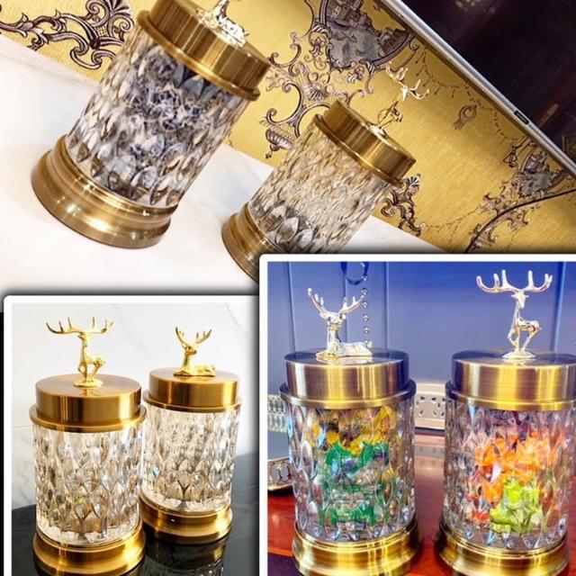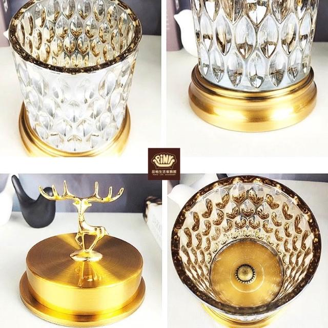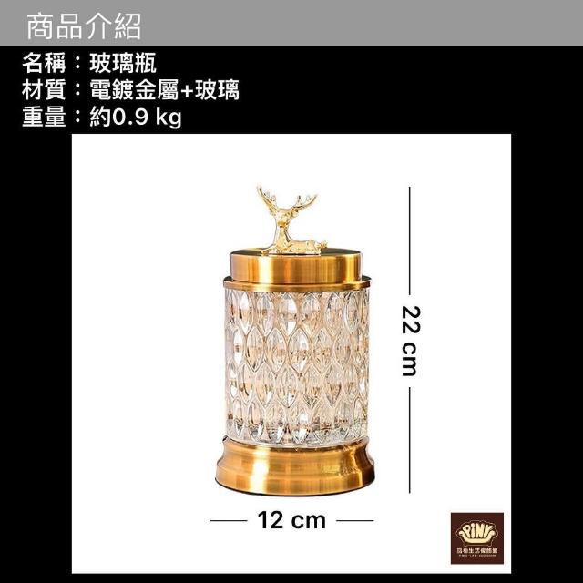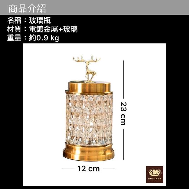 PiNYU 品柚生活傢飾館鹿頭玻璃收納罐(輕奢玻璃罐收納瓶糖果罐鹿頭擺件 玻璃瓶)