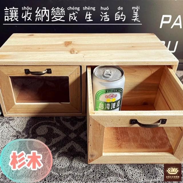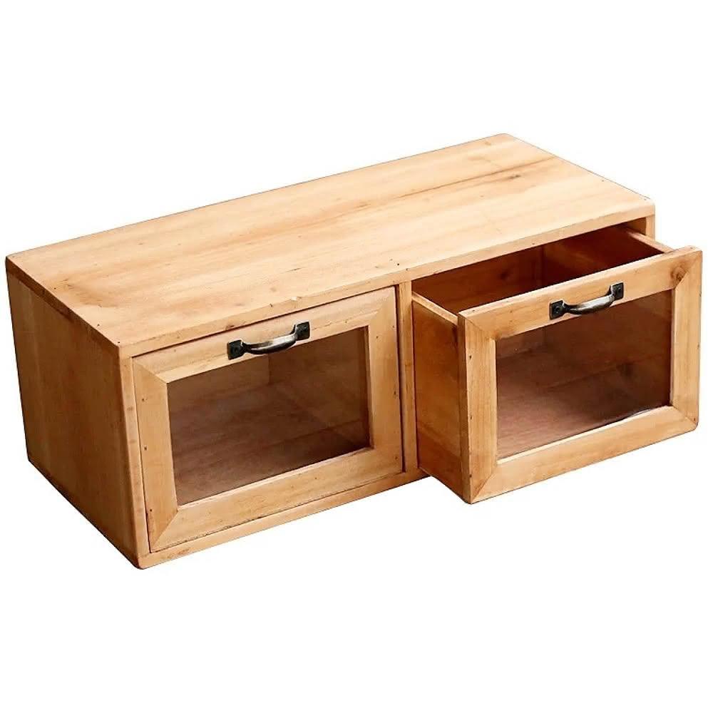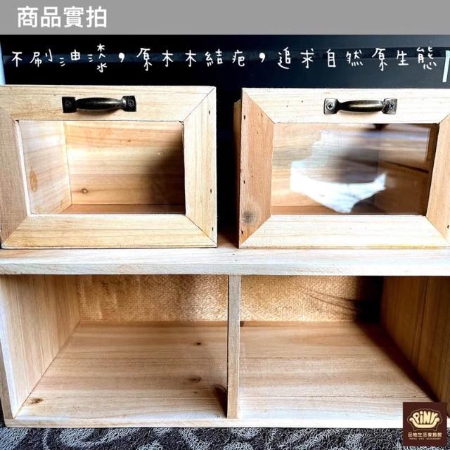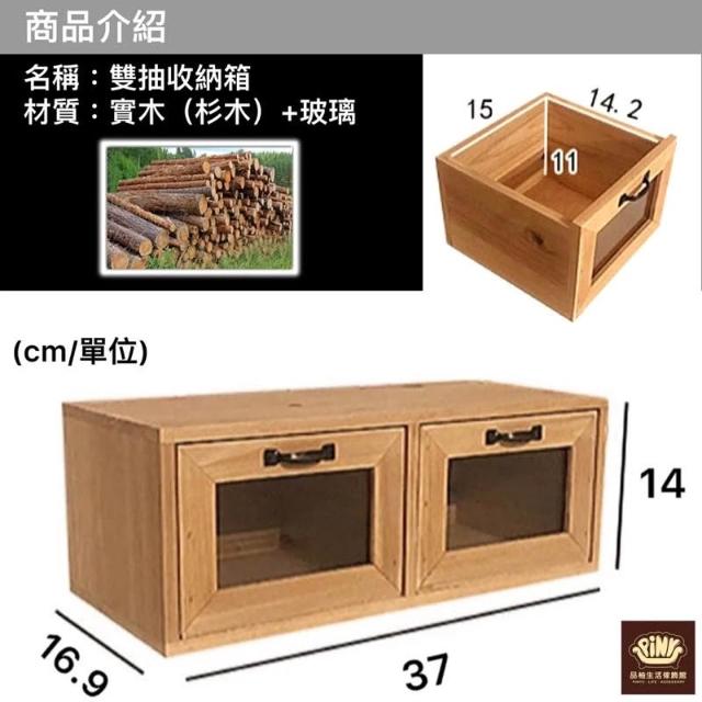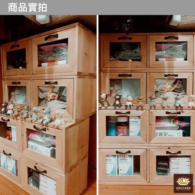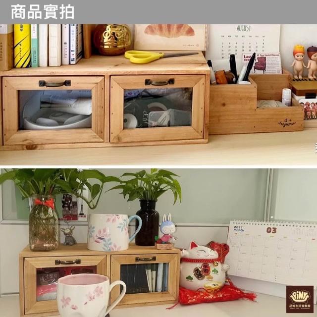 PiNYU 品柚生活傢飾館雙抽玻璃收納箱(鄉村風玻璃收納箱化妝品收納盒小物品實木收納 置物櫃 木箱)