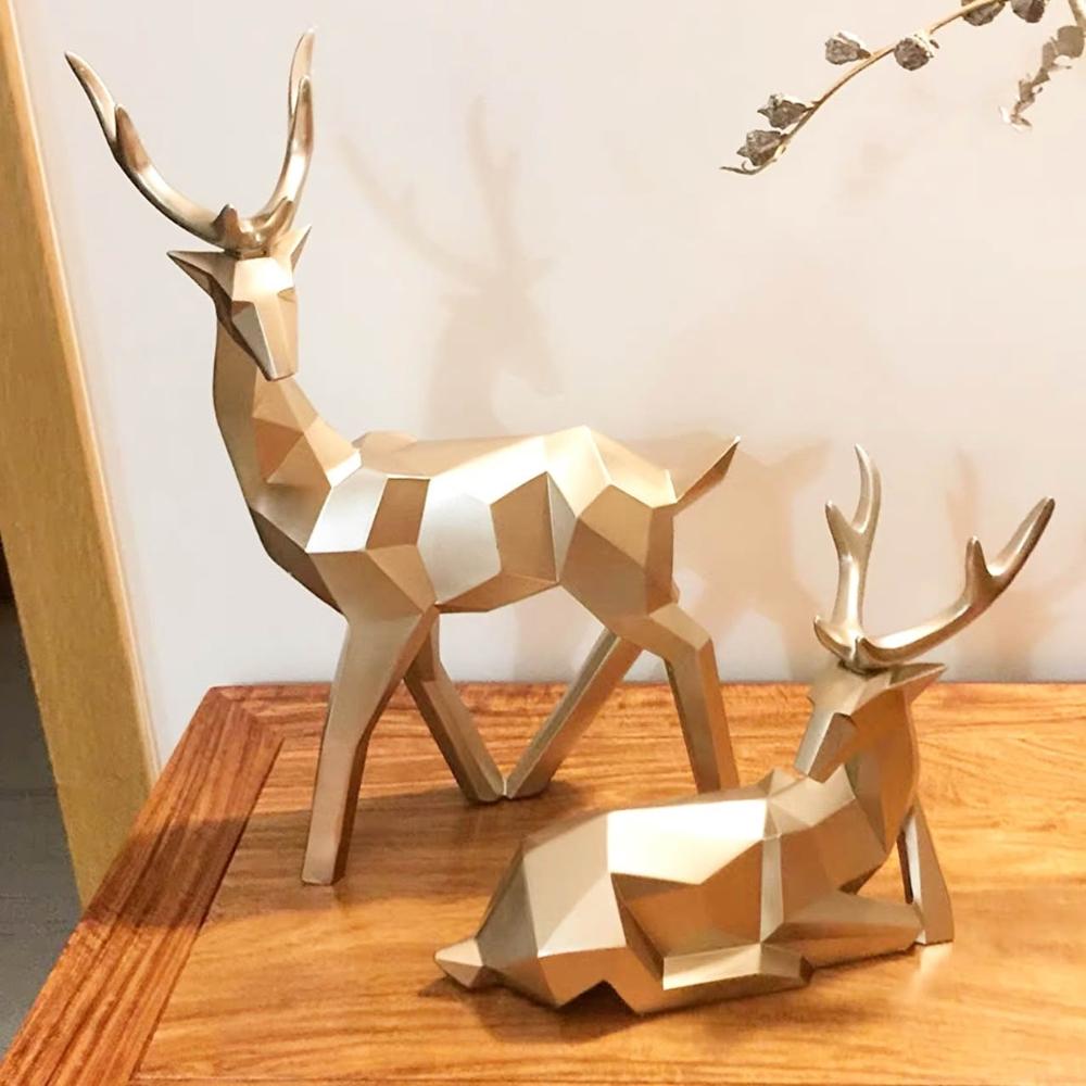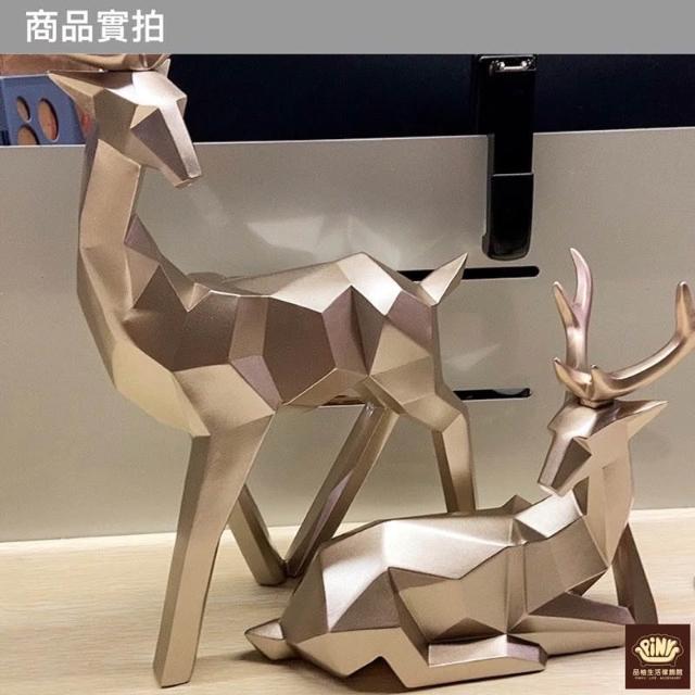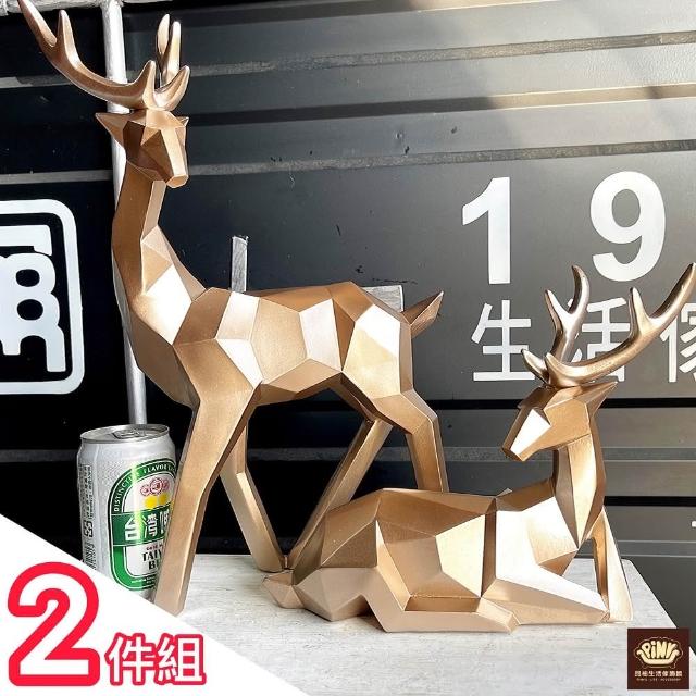 PiNYU 品柚生活傢飾館「2件組」北歐招財鹿(現代北歐風大型工藝品鹿招財風水擺件玄關辦公室客廳擺飾)