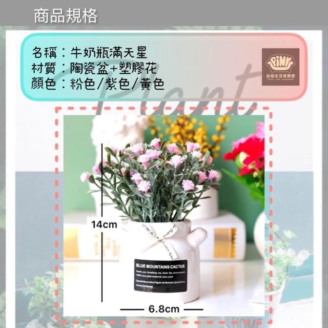 PiNYU 品柚生活傢飾館牛奶瓶滿天星(鄉村風假花陶瓷牛奶瓶盆栽擺飾 塑膠花 可愛飾品)