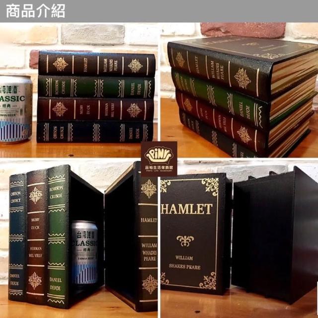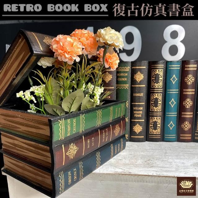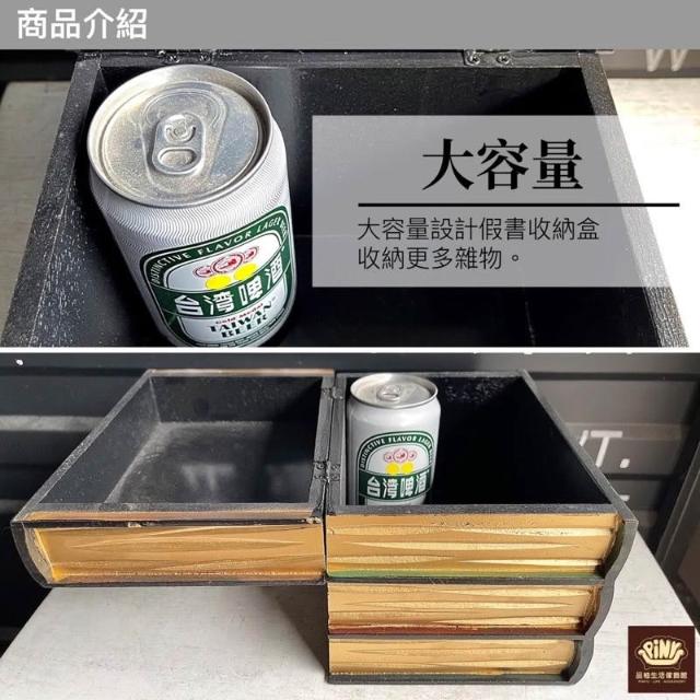 PiNYU 品柚生活傢飾館仿書收納盒(美式復古工業風木質書本造型大號首飾收納盒 書香氣息店面擺飾)