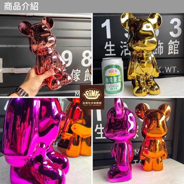 PiNYU 品柚生活傢飾館電鍍愛心熊(美式暴力熊積木熊玩偶桌面擺件公仔 電鍍 樹脂 愛心熊)