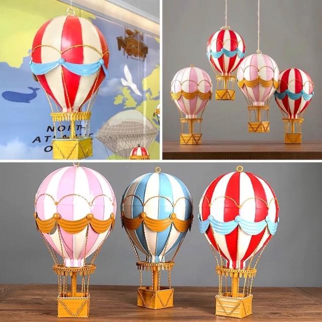 PiNYU 品柚生活傢飾館熱氣球模型(鐵質美式復古熱氣球模型鐵藝裝飾擺件擺飾掛飾)