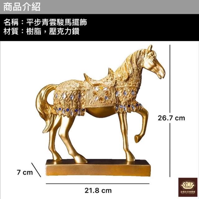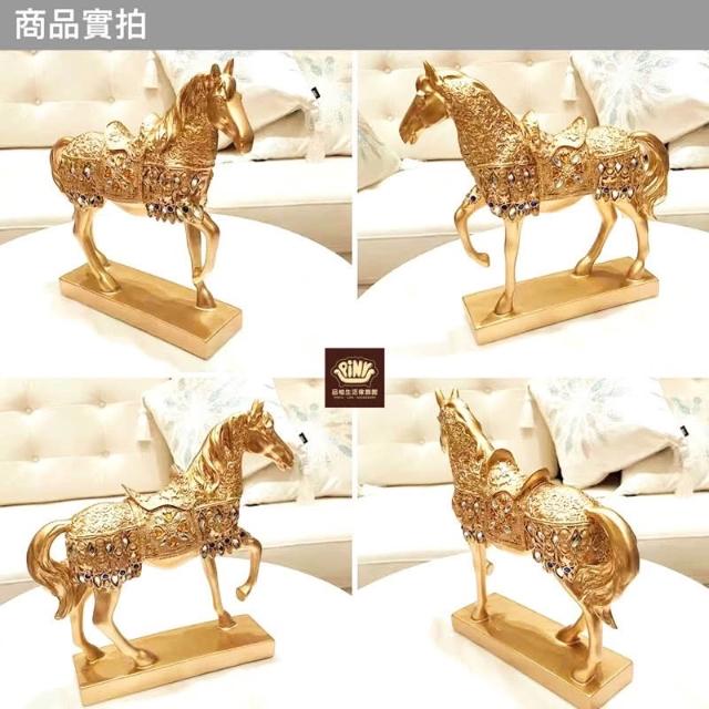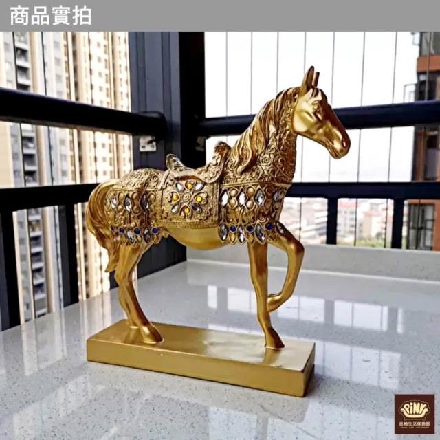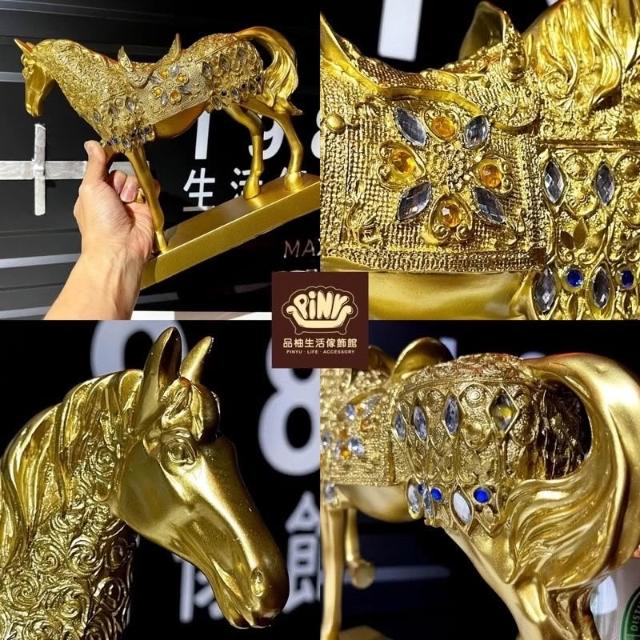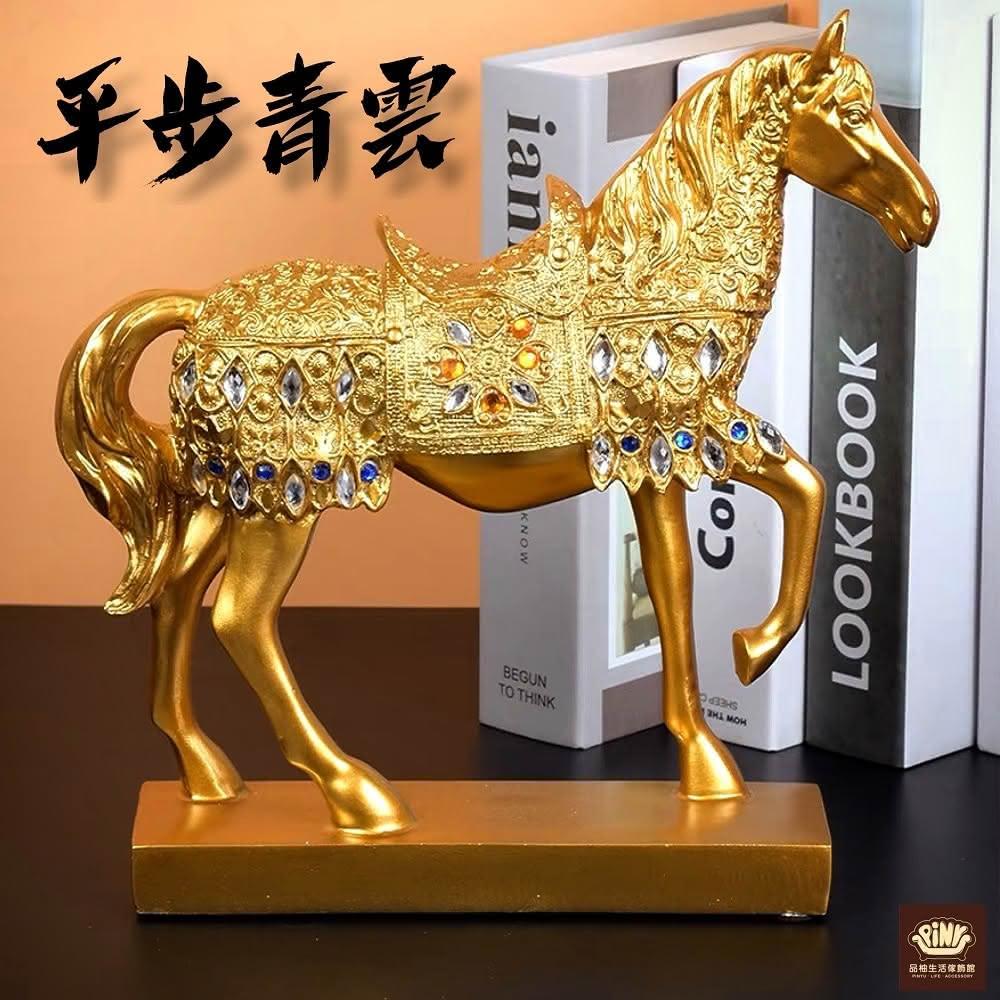 PiNYU 品柚生活傢飾館平步青雲金鑽馬(美式復古工業風樹脂彩繪玄關金馬擺飾擺件風水招財裝飾)