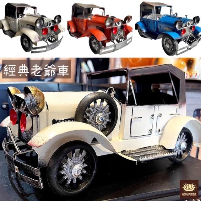 PiNYU 品柚生活傢飾館經典老爺車(美式復古工業風福特老爺車鐵藝鐵皮模型車經典汽車擺飾)
