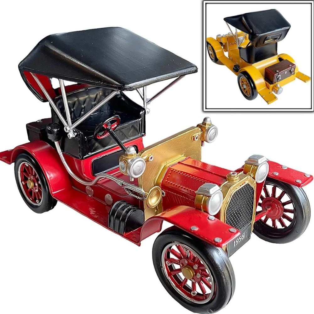 PiNYU 品柚生活傢飾館復古老爺車(大型美式復古工業風手工經典老爺車鐵藝鐵皮模型車汽車擺飾)