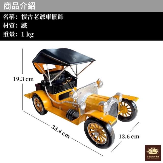 PiNYU 品柚生活傢飾館復古老爺車(大型美式復古工業風手工經典老爺車鐵藝鐵皮模型車汽車擺飾)