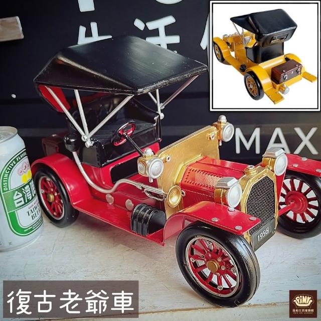PiNYU 品柚生活傢飾館復古老爺車(大型美式復古工業風手工經典老爺車鐵藝鐵皮模型車汽車擺飾)