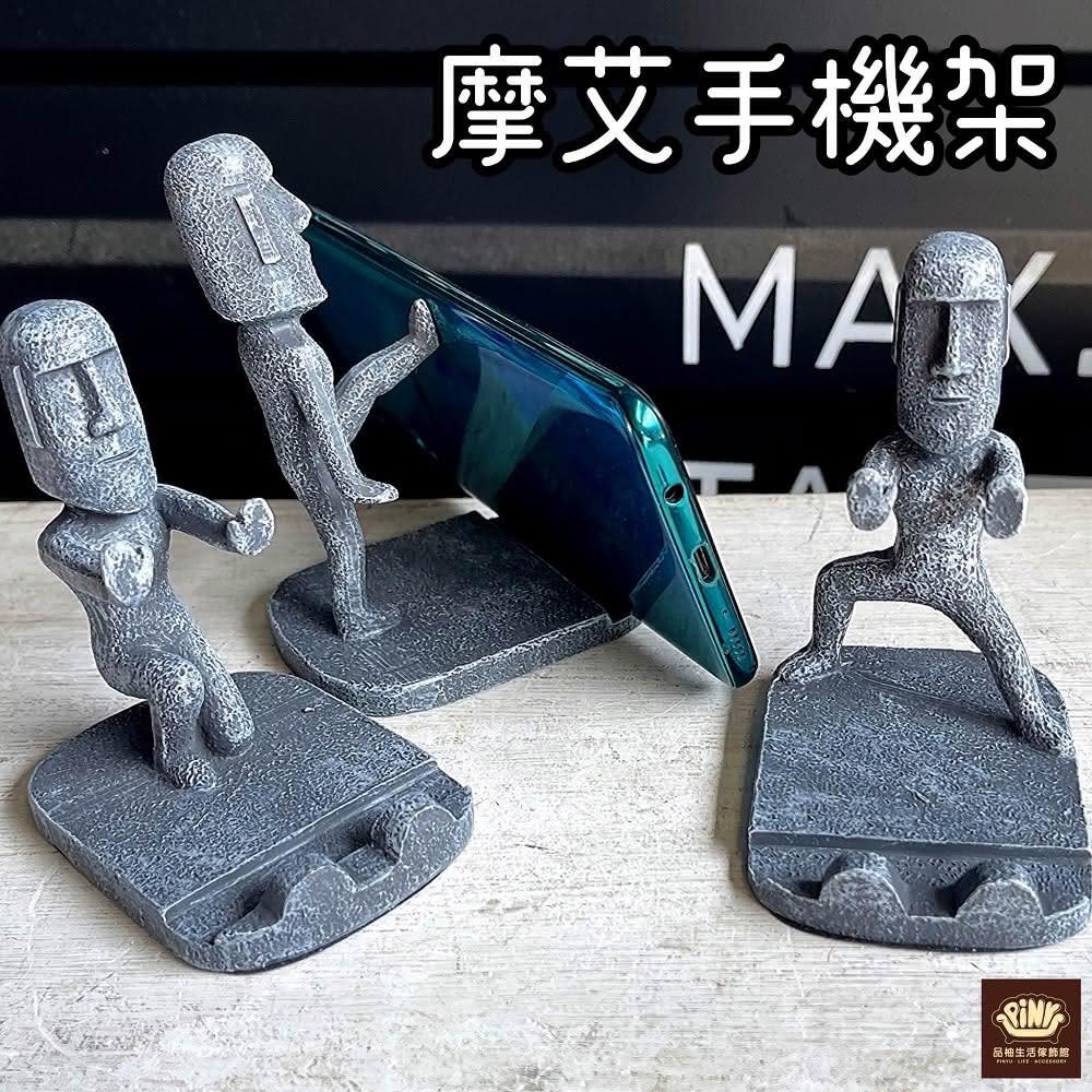 PiNYU 品柚生活傢飾館摩艾架(摩艾造型手機支架裝飾品 復活島石像 名片架 石像手機架 家居擺飾)