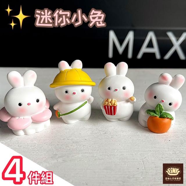 PiNYU 品柚生活傢飾館4件組。迷你小兔(迷你兔子辦公室桌面小擺件創意車內飾用品可愛擺件裝飾交換禮物)