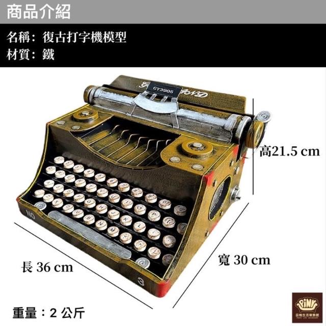 PiNYU 品柚生活傢飾館打字機模型(復古工業風鐵質大型打字機擺件裝飾擺飾品 攝影道具 模型 店面擺飾)
