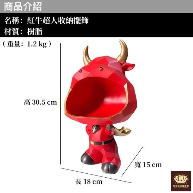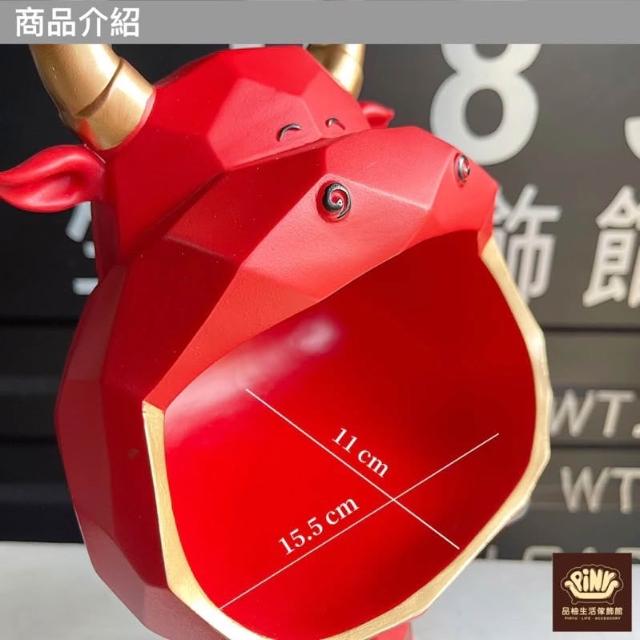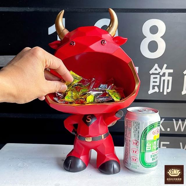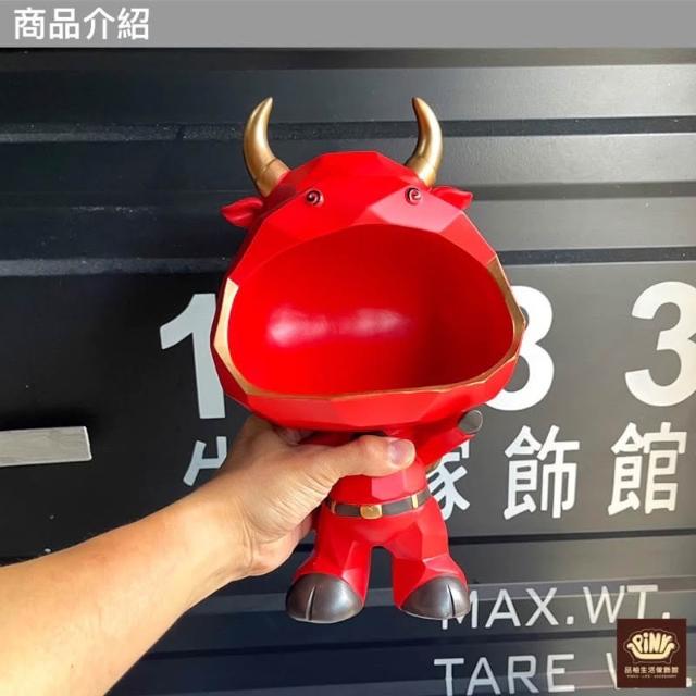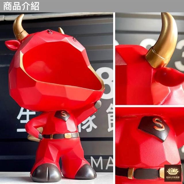 PiNYU 品柚生活傢飾館紅牛收納擺飾(可愛家居收納玄關 牛動物超人造型收納籃 鑰匙飾品收納糖果收納)